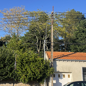 Comment cet espace privilégié réservé à un échantillon d’habitants pourrait prendre place dans une dynamique de quartier, tout en préservant le calme et l’intimité dont il fait preuve ? Dans l’angle de l’avenue des Palombes, dans la rue parrallèle à celle du jardin, se dévoile une maison de maître imposante. Accompagnée de son terrain, elle domine le quartier pavillonnaire. Ses grands murs d’enceinte ne laissent rien apercevoir. Cette demeure est donc, comme les réservoirs d’eau, un mystère pour la quartier. Idéalement située aux abords des reservoirs de la Contrie, mais aussi des écoles, elle se démarque par son architecture et sa taille malgré la tentative de dissimulation des murs de clôture.