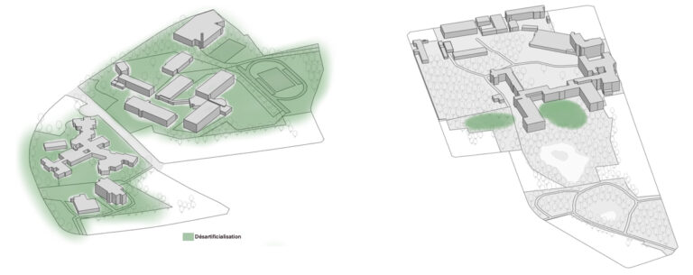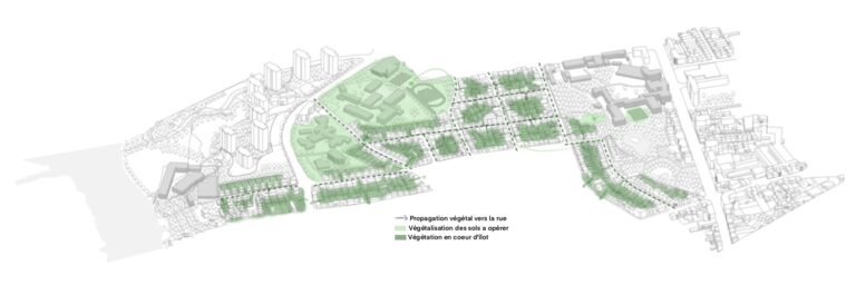 - Rouvrir le sol et valoriser la biodiversité, pour profiter des paysages végétaux et des entités existantes, renouer avec le vivant et créer une continuité entre parcs, coeurs d’îlots et berges.