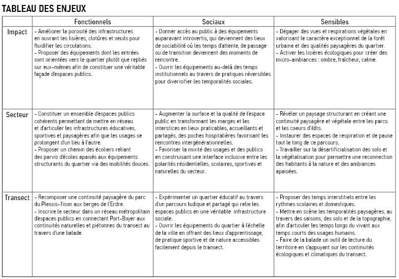 - Diversifier les cheminements pour tisser une ville éducative, en développant la traversée Est-Ouest et les continuités physiques et symboliques entre les polarités par l’exploitation des lisières pour transformer la balade en un outil de lecture du territoire.