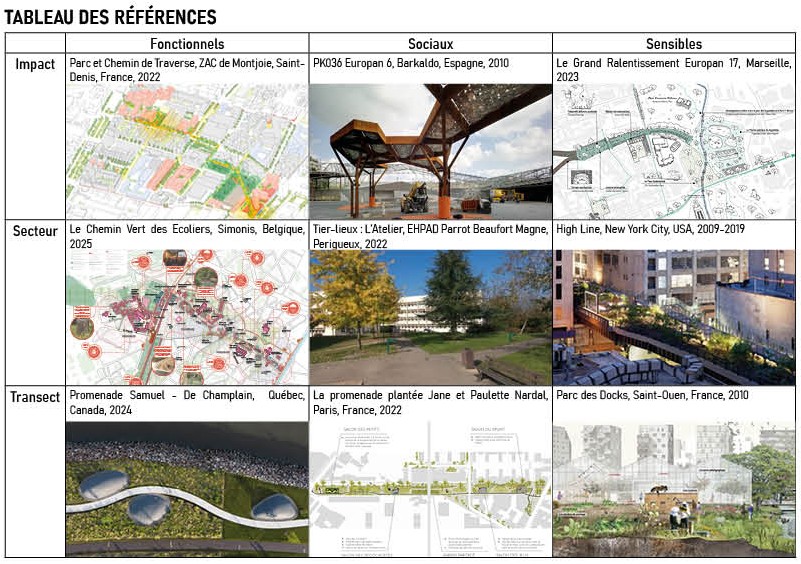 Ce réseau compose une ville éducative et sensible, faite de seuils, de pauses et de regards partagés, qui favorise la mixité sociale et le partage du patrimoine existant, en révélant les continuités paysagères du quartier sans pour autant limiter l’emprise des infrastructures publiques ou privées. Il articule les temps courts des usages quotidiens aux temps longs du vivant, en mettant en scène la richesse du site évoluant au gré des saisons.
