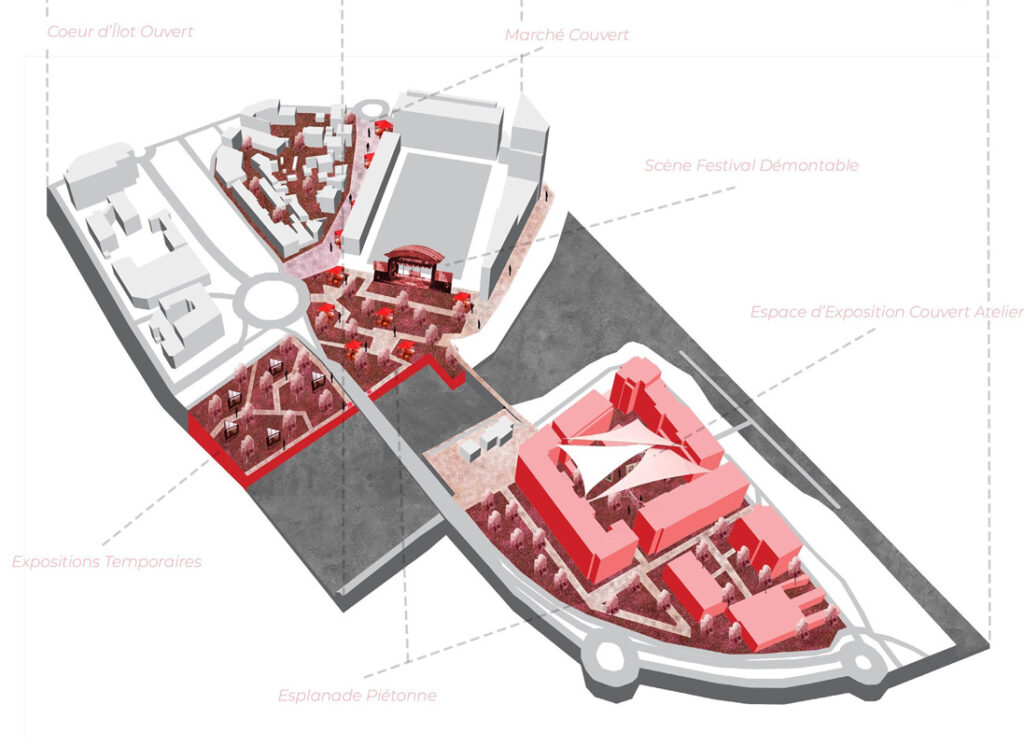 Du fait de son emplacement central, le parvis offre un fort potentiel comme lieu de réunion des habitants du quartier et de la ville. Ainsi, l’enjeu est de créer un environnement propice aux échanges, au partage et à la convivialité. Nous attendons à la fois des équipements temporaires, pour abriter des marchés ou accueillir des scènes et festivals, mais aussi des installations pérennes, terrains de pétanque, guinguette ou exposition en plein air, pour encourager une ambiance de voisinage. Ceci pourra ensuite se répandre dans la ville pour offrir des espaces publics appropriables par les habitants.