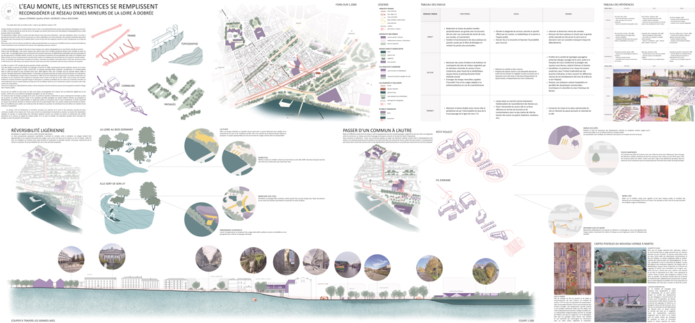 Le secteur n°07 est finalement un territoire mouvant aux rythmes de la Loire et des passants, ponctué de lieux communs couplés à leur espace vert. Ainsi, pour recréer une dynamique transversale au secteur, au travers des séparations spatiales et sociales, la revalorisation des interstices apparaît comme une solution de liaison et d’extension des entités présentes sur le secteur au regard de l’espace public. Et si la Loire se réveille, ces interstices seraient alors l’occasion d’y plonger ou bien de prendre de la hauteur.