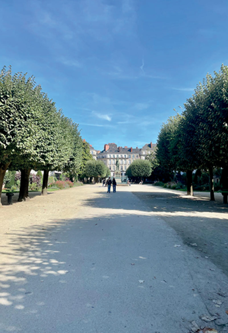Le cours Cambronne relie la place Graslin à la rue des Cadeniers par un jardin à la Française enclavé entre deux îlots aux façades néo-classiques. La végétation, trop peu présente au vu des surfaces minérales, est très contrôlée. Des lignées d’arbres taillés abrite de petites zones de pelouse et devance quelques arbres plus hauts et moins entretenus. Ainsi le centre du cours, en sol clair de type stabilisé, est pleinement ensoleillé lors de journées à ciel dégagé et est propice à s’ancrer dans la lignée des îlots de chaleur qui ponctuent la ville . Il est alors légitime de questionner l’hospitalité du lieu au vu de sa confortabilité et de son exposition.