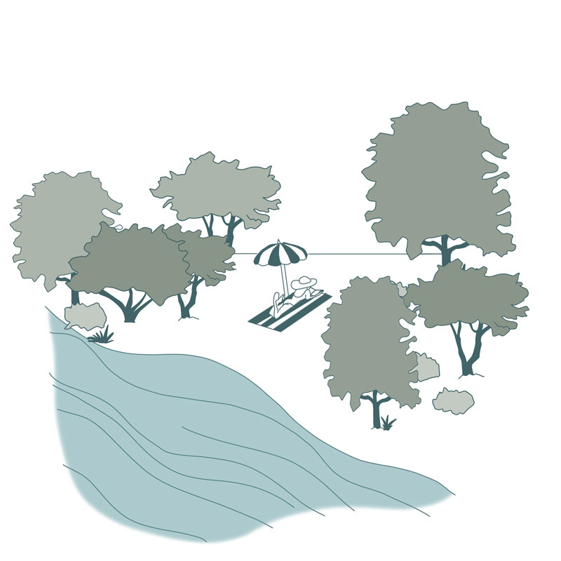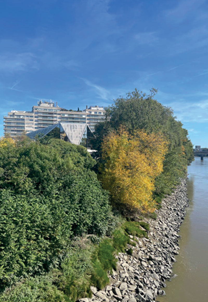 vers elle et au contact plus que visuel avec l’eau. - Offrir une berge enherbée sur laquelle chacun peut venir se poser librement pour profiter de la proximité de la Loire et de l’ambiance qu’elle crée. À la manière de la pelouse devant l’Absence, proposer un espace appropriable par tous.tes et dont les usages varient selon les temporalités.