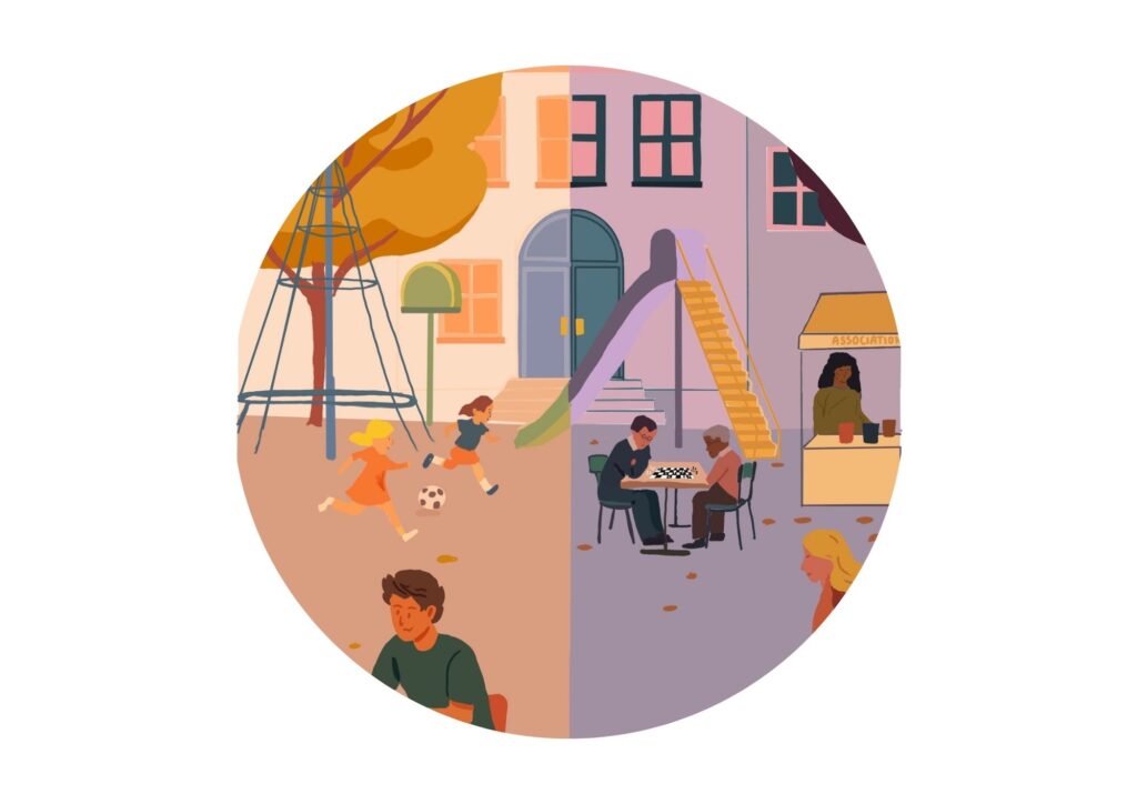 À l’échelle micro, l’aménagement du parc vise à créer un cœur multigénérationnel, accessible et inclusif. Cet espace paysager devient un point d’ancrage pour les habitants, encourageant les rencontres et les activités pour tous les âges.