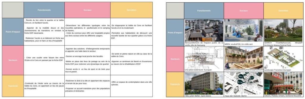 Nous avons décidé d’exposer des scénarios de programmation en fonction de trois piliers d’hospitalité, avec comme point central la friche EDF, qui facilite leur liaison mutuelle.