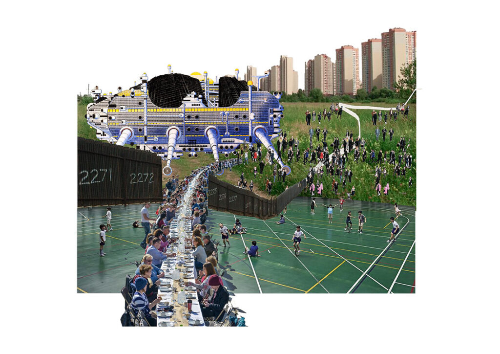 Cette ancienne friche EDF n’est pourtant pas si effrayante. Elle pourrait même être très accueillante si on lui donnait l’opportunité de se dévoiler. En ouvrant ses grilles, ses voisin.e.s se rendraient compte d’à quel point elle peut être hospitalière. Iels pourraient l’investir et se rassembler autour de ce commun. Selon nous, c’est la possibilité de renouer le lien entre les riverain.e.s. De créer un nouveau lieu d’hospitalité autour d’un point névralgique qui redonnera une respiration à un quartier rythmé par la contrainte. C’est pourquoi, nous souhaitons faire avec ce monstre et lui redonner de sa superbe plutôt que de l’effacer du paysage.