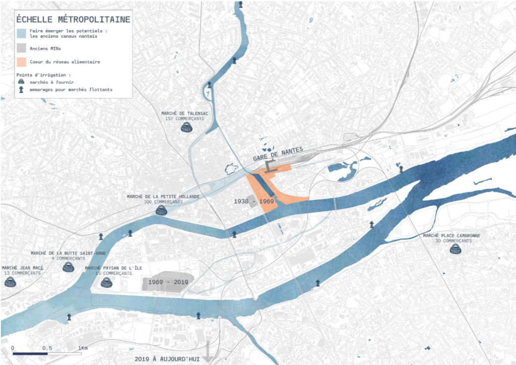 Par le passé, le MIN se situait au cœur de la ville. Historiquement implanté dans le quartier champ de Mars, il a été déplacé sur l’île de Nantes et a récemment été relégué proche du périphérique, à Rezé. Ces constats nous poussent à nous interroger sur les raisons de ces choix ? On relègue la logistique qui permet aux villes de se nourrir dans sa périphérie. Est-ce que cette logistique est sale ? Pourquoi la cacher ?