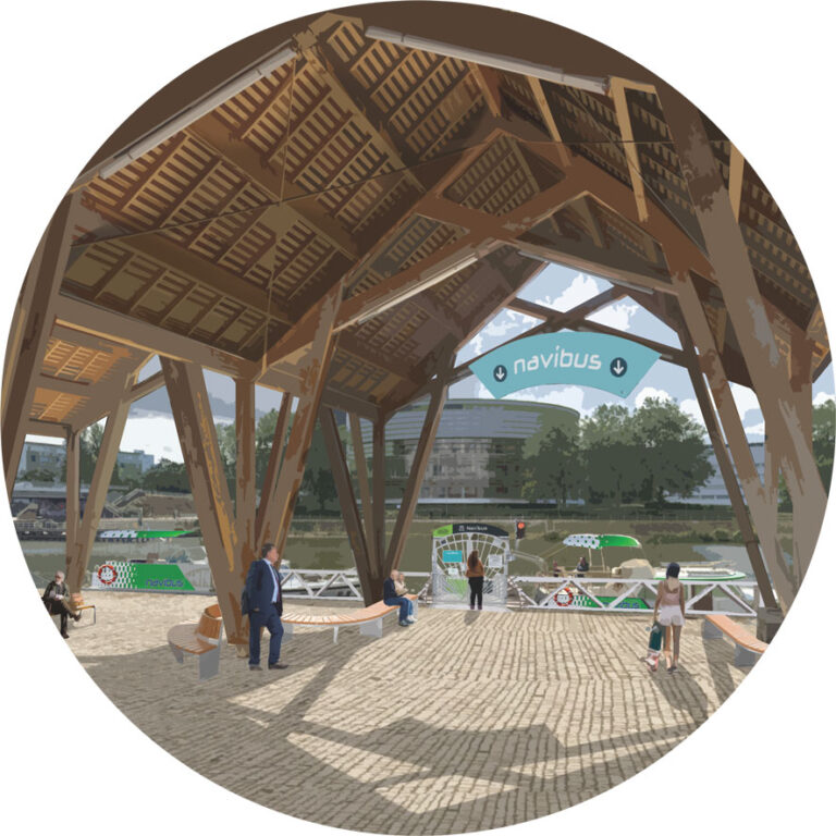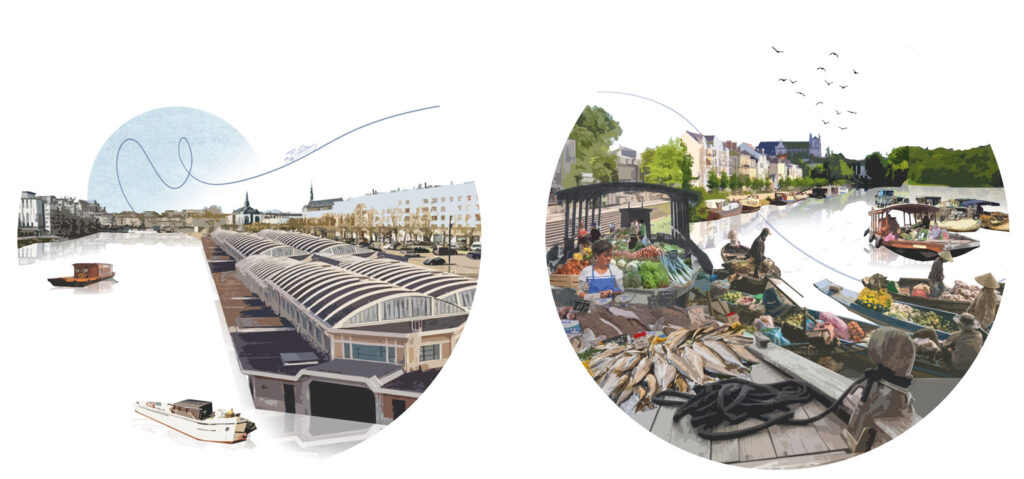 Ainsi, c’est en bord des berges du canal saint Félix que notre nouveau cœur du réseau logistique fluvial de Nantes s’implante. De ce centre partiraient des bateaux venant irriguer différents points de la métropole : des marchés ou des zones auxquelles ils peuvent s’amarrer et proposer leurs produits sous forme de marché flottant.